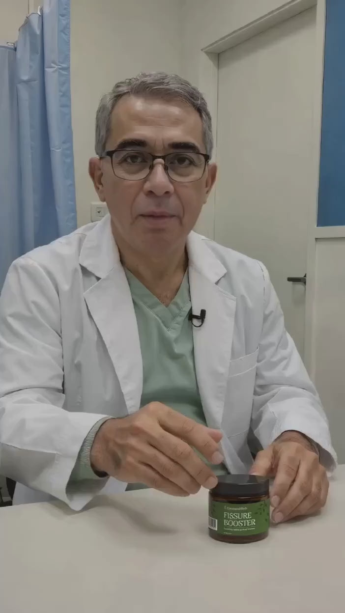Herbal actives nurture the skin barrier to support fissure recovery.